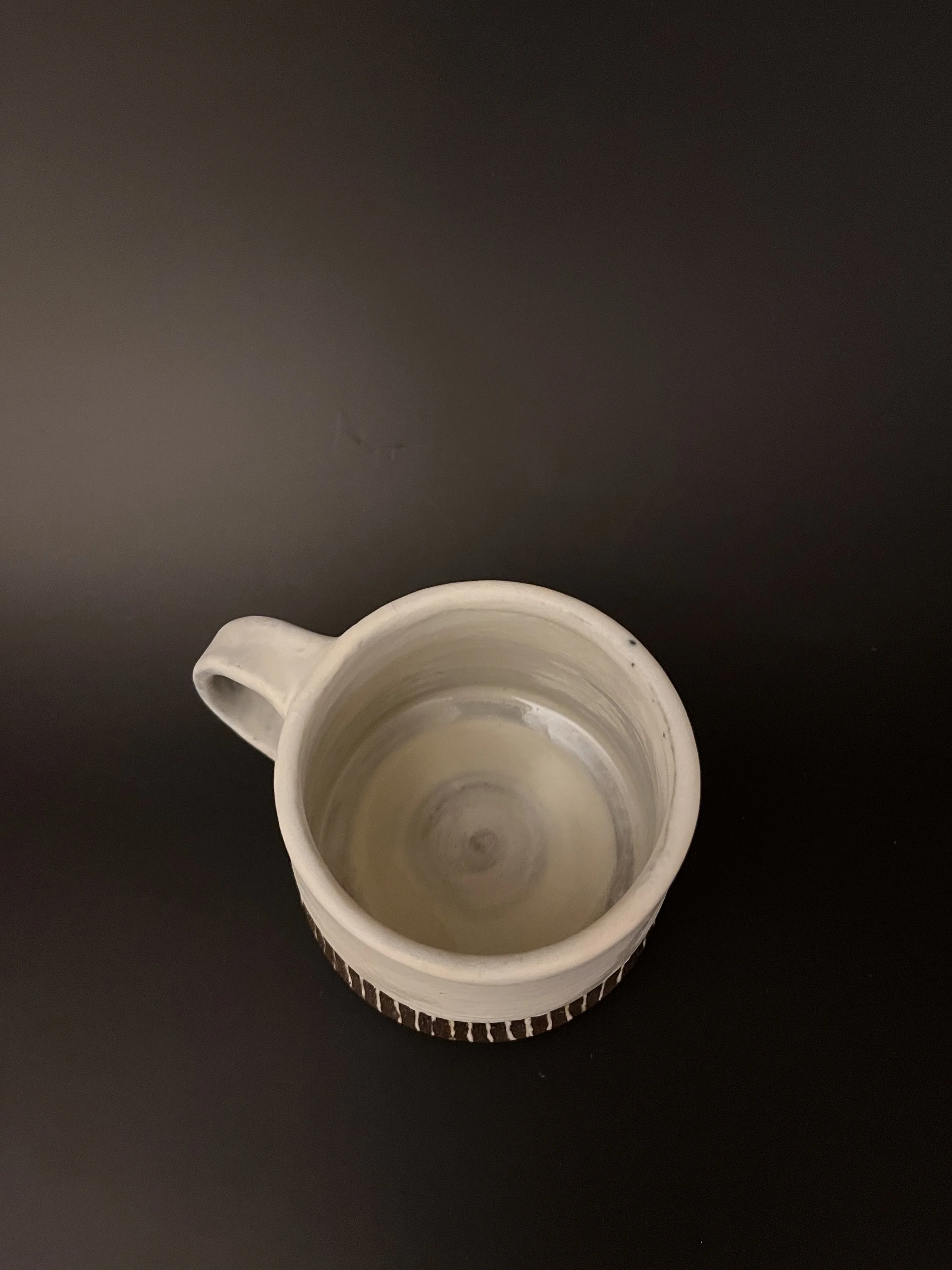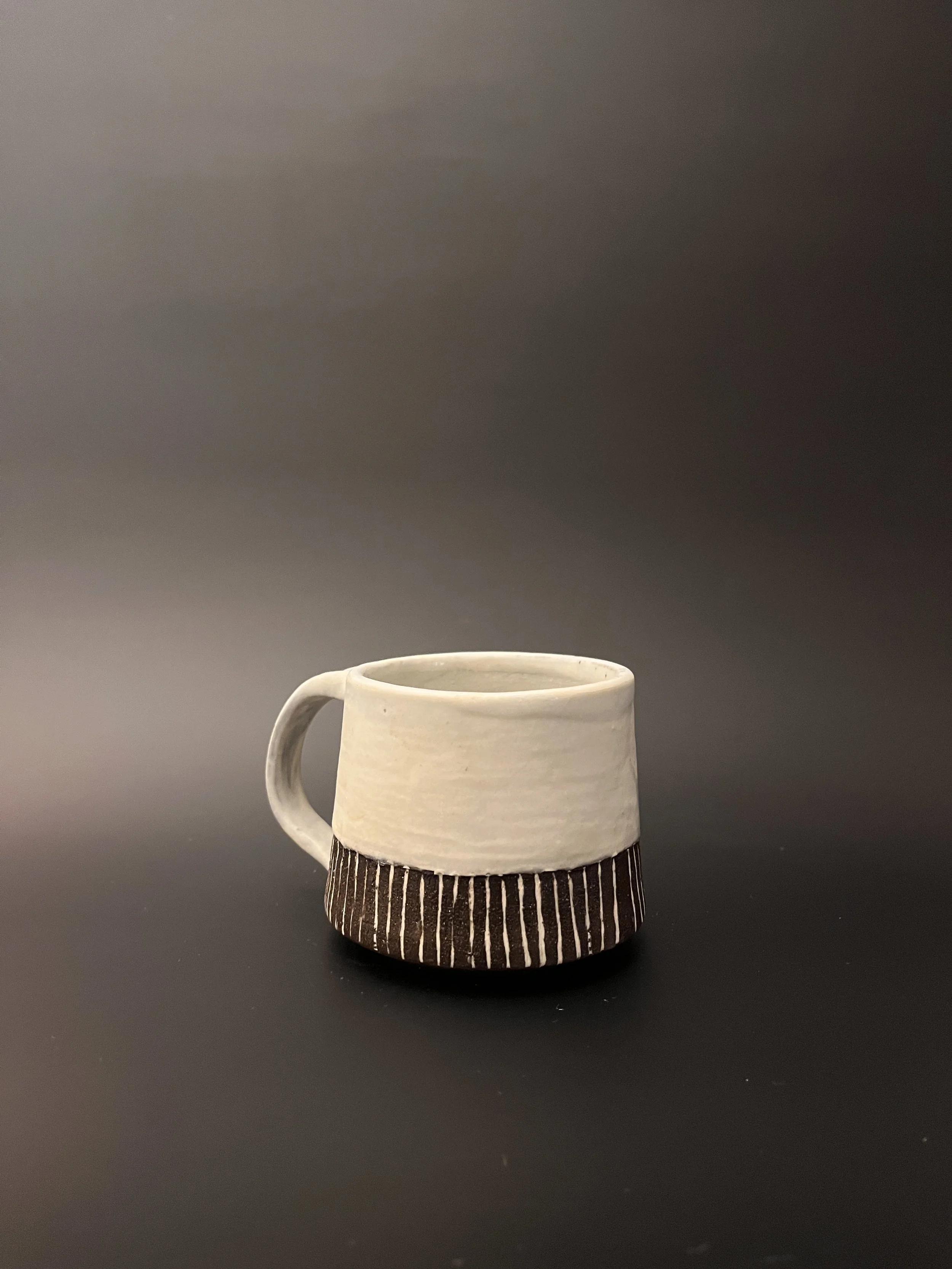 • I use a few different claybodies. One is a cousin to porcelain -pure white and silky. The other is a dark chocolate - yum! I fire to cone 6-7 in an electric kiln.