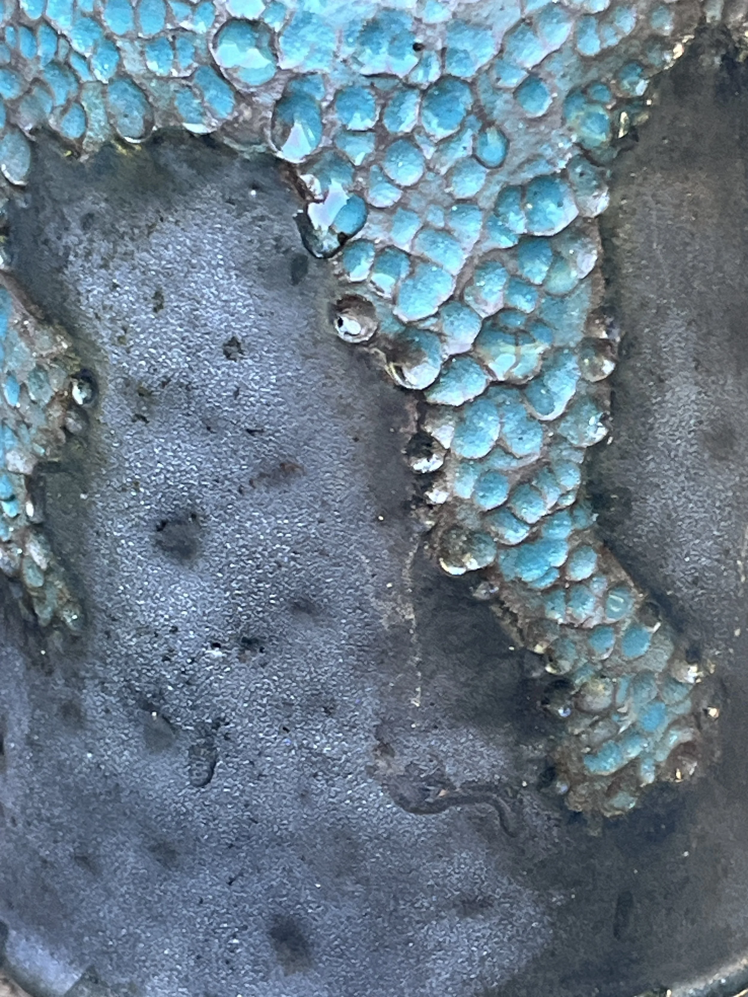 I use a combination of slips and both commercial and formulated glazes. I take glaze safety seriously! All are food -safe, chemically stable, dishwasher, and microwave safe - though all ceramic products will last longer if hand washed.